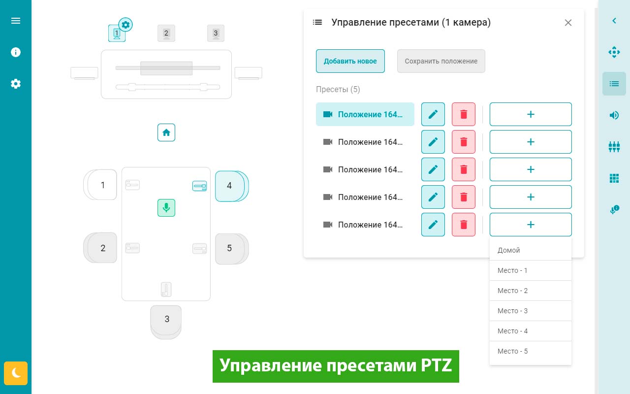 - Ручное переключение между сохранёнными пресетами PTZ-камер.