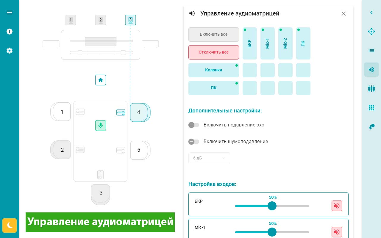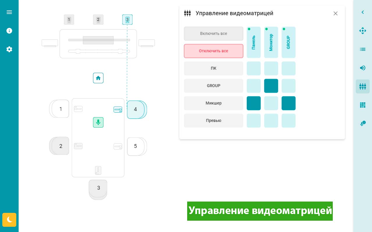С помощью панели управления вы можете централизованно управлять оборудованием видео/аудио коммутации: