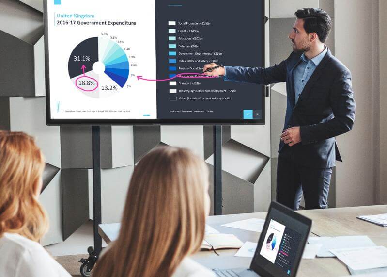 Хост может получить удаленный доступ к устройству докладчика и управлять им с помощью сенсорной панели ViewBoard Touch Back Control, тем самым разделяя управление устройством докладчика. Любые внесенные изменения будут отражены на всех связанных дисплеях.