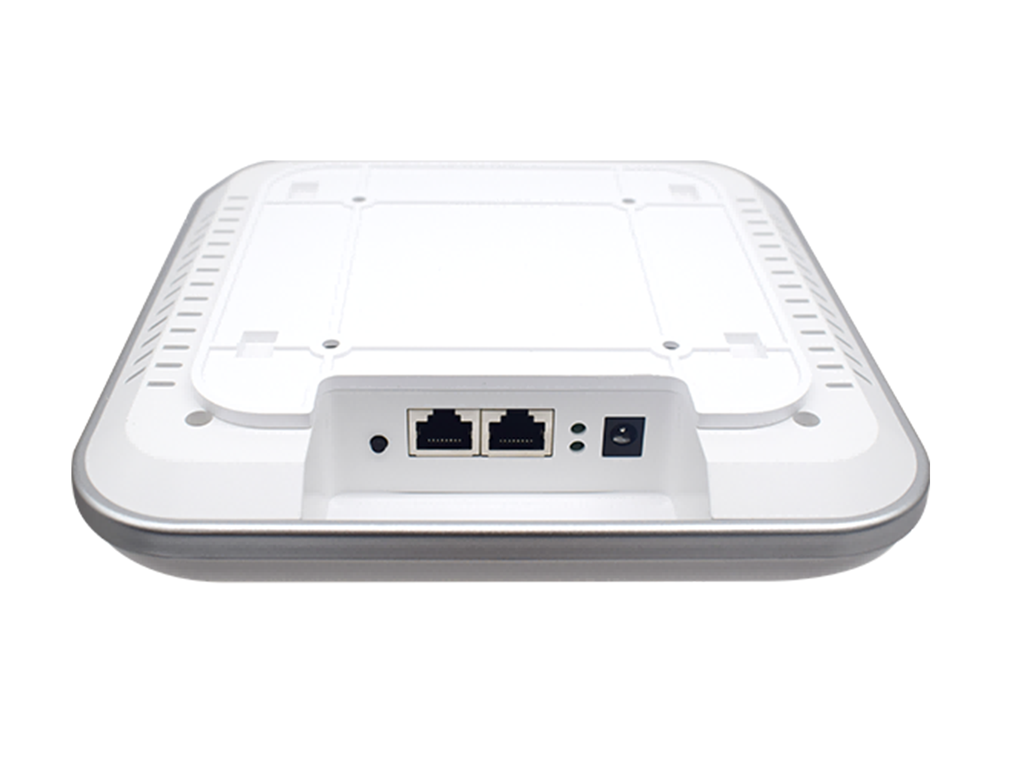 Конструкция и питание устройства ориентированы на простоту установки и эксплуатации. Точка доступа оснащена двумя гигабитными портами RJ45 с поддержкой питания PoE (стандарт 802.3at), что позволяет передавать данные и электроэнергию по одному кабелю, избавляя от необходимости прокладки дополнительных линий питания. Прочный корпус и широкий температурный диапазон эксплуатации (-20~55 °C) обеспечивают надежность работы оборудования в различных условиях офисной среды.