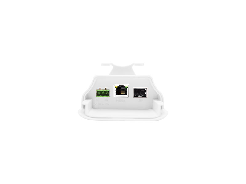 Ключевые особенности конструкции и PoE. Устройство оснащено одним портом RJ-45 с поддержкой питания по технологии Power over Ethernet (стандарты 802.3af/at), что значительно упрощает монтаж дополнительного оборудования, исключая необходимость подведения отдельных кабелей питания. Оптический порт SFP позволяет гибко подбирать модули в зависимости от требуемой дальности передачи данных и типа используемого волокна.