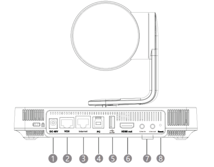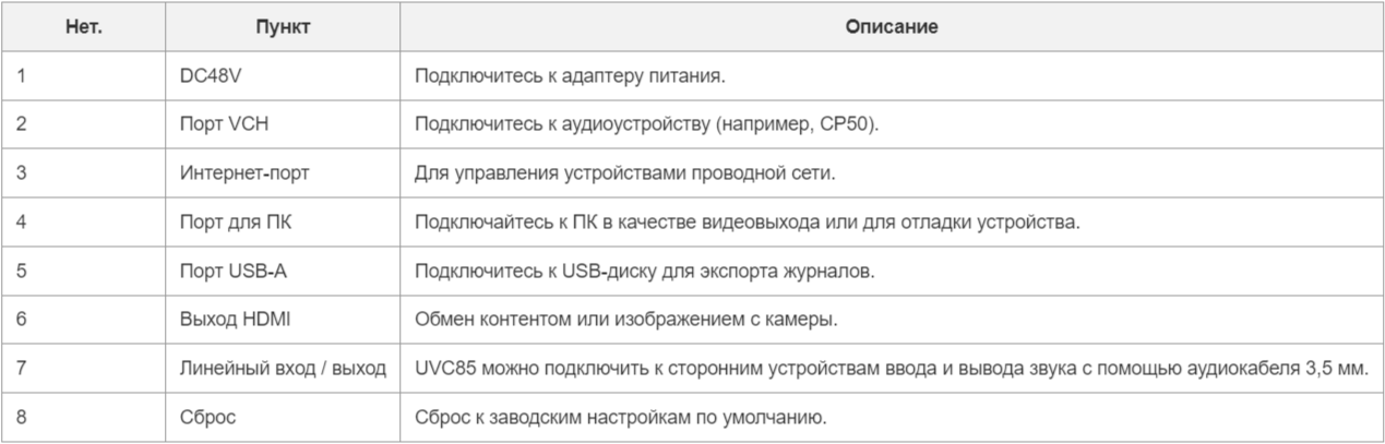 Для подключения к UVC-камере (например, UVC85) или хосту VC (например, MeetingEye 500) |