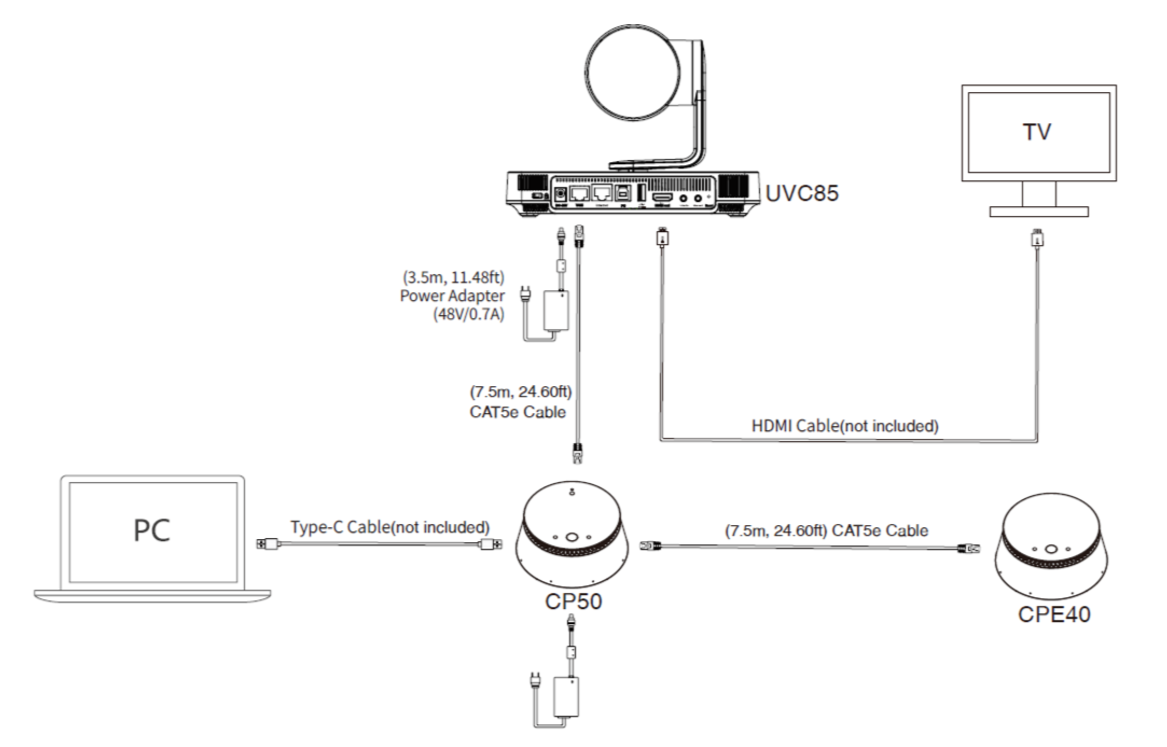UVC85 можно использовать с аудиоустройствами, такими как CP50/CPE40, что обеспечивает широкие возможности расширения и превосходное качество звука.