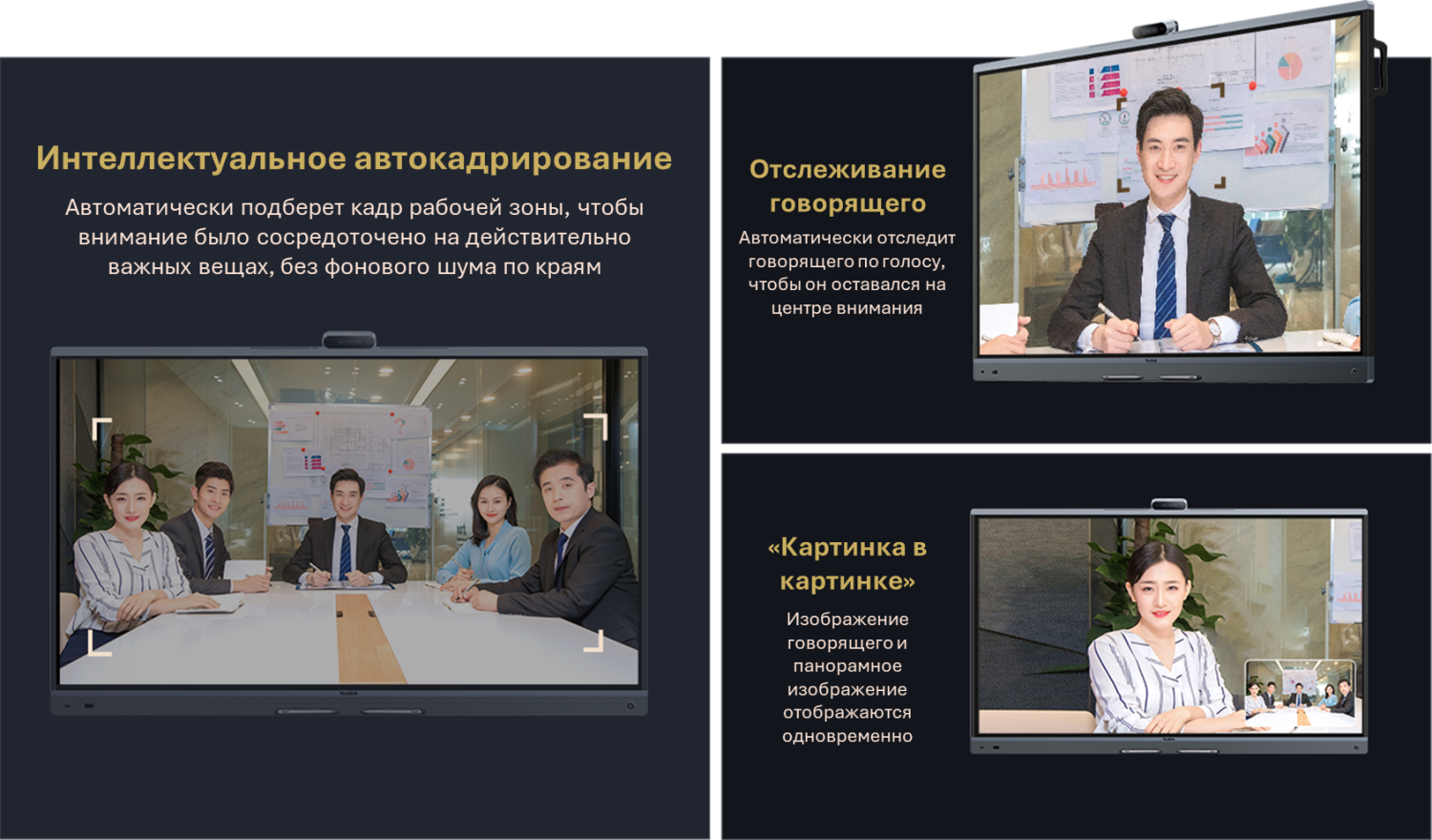 - Голосовое слежение за говорящим и автоматическое кадрирование
