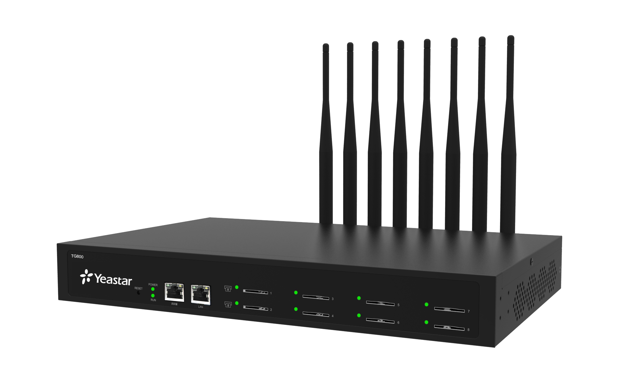 Yeastar TG800L — это профессиональный VoIP-LTE-шлюз, разработанный для компаний, которым требуется надежная и эффективная связь через сотовые сети. Устройство оснащено восемью каналами для работы с LTE-линиями, что позволяет существенно оптимизировать расходы на корпоративную телефонию за счет использования функций выбора наиболее выгодного маршрута звонка и технологии Call Back. Данный шлюз является незаменимым решением для создания резервного канала связи при сбоях в работе проводных сетей или для организации телефонии в удаленных офисах, где отсутствует доступ к кабельной инфраструктуре.
