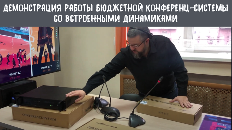 Краткая демонстрация работы бюджетной настольной конференц-системы со встроенными динамиками