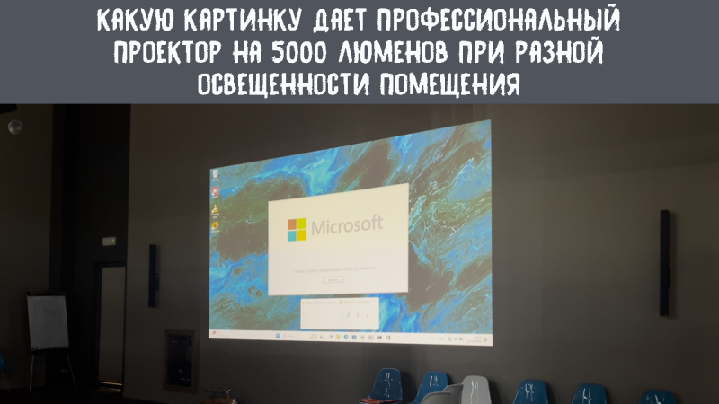 Показываем как "светит" профессиональный проектор на 5000 люмен при смене яркости помещения.